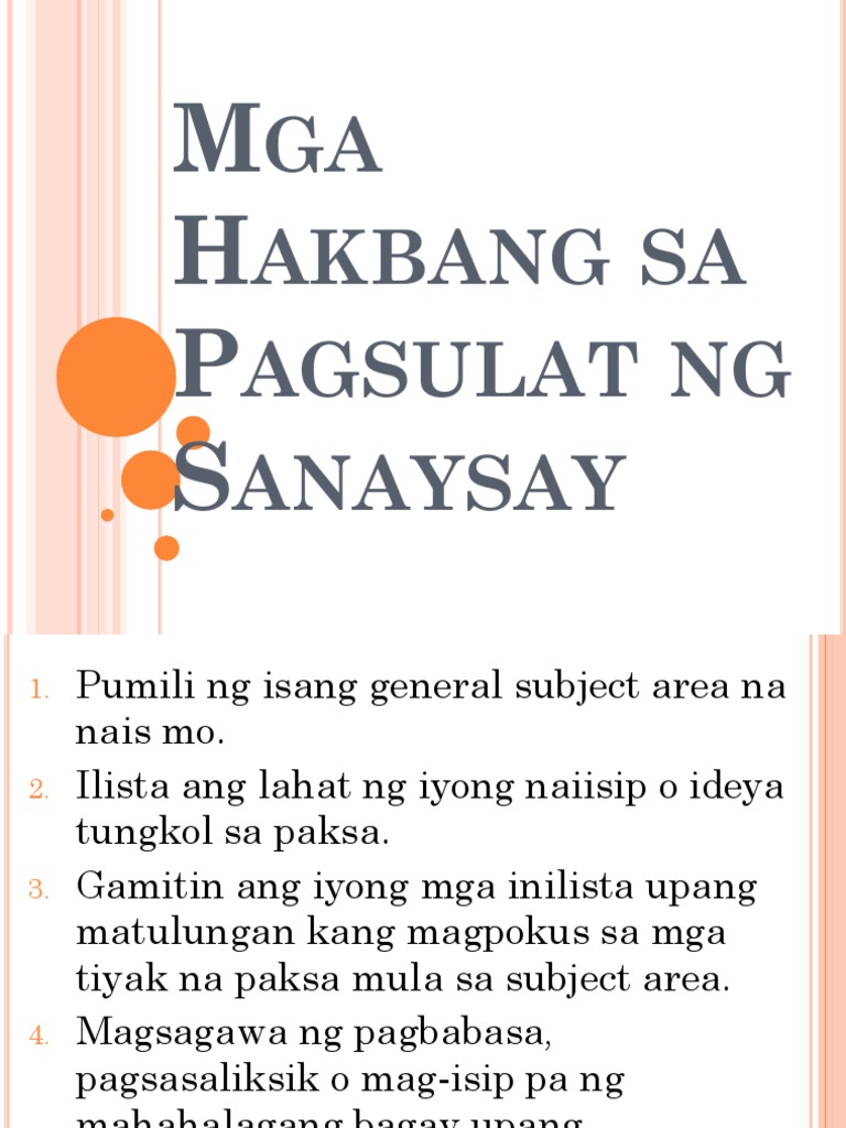 Ang pinakamahusay na sanaysay Pokus ng sanaysay Maiiwasan ang paulit-ulit na ideya Nagsisilbing concept map Mga hakbang sa pagsulat ng sanaysay Maari itong. This meeting is in progress for ----- purpose. Pangalawa ay dahil sobrang dami kong alam sa topic.