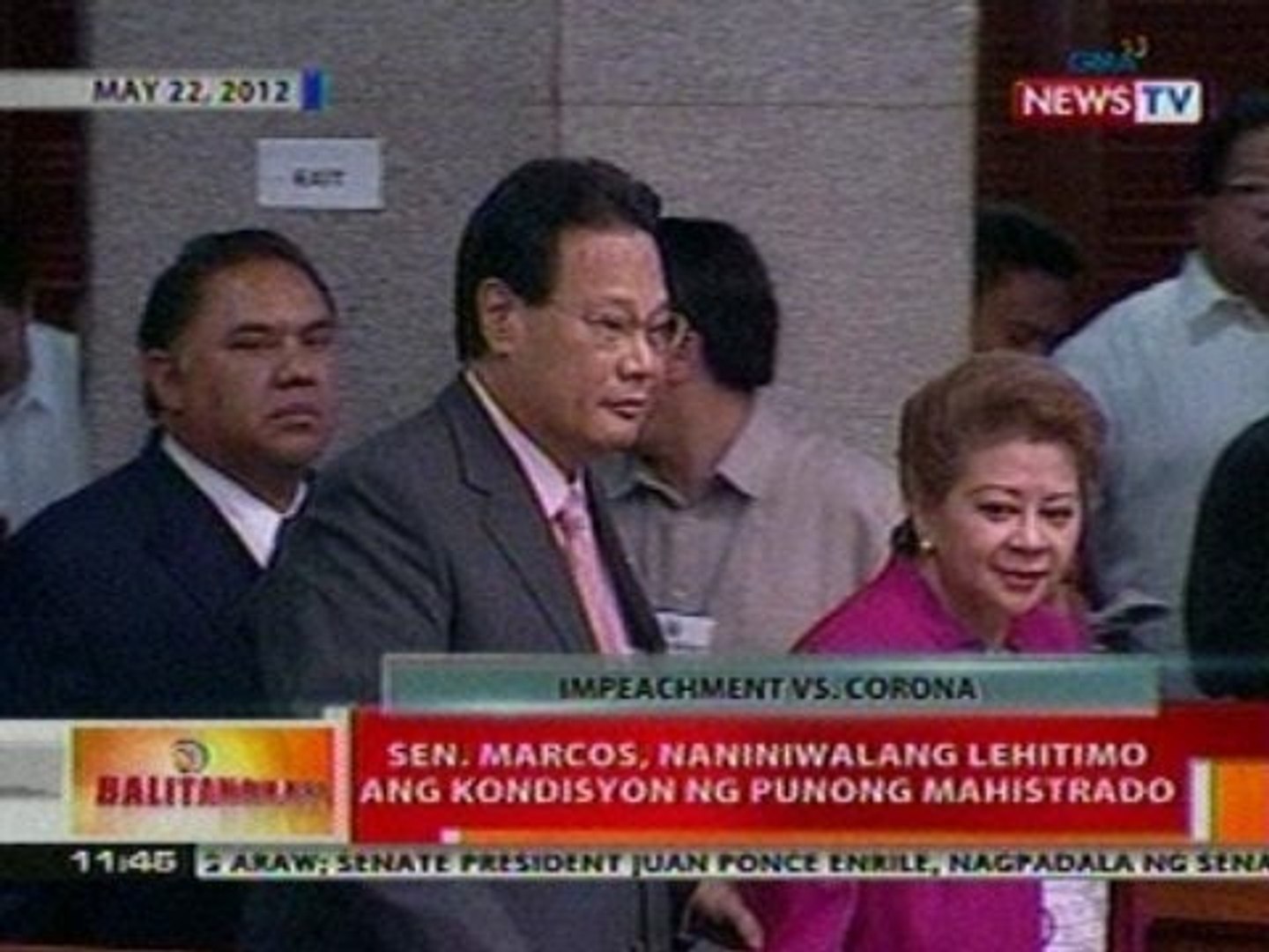 Mga hukom na senador sa unang araw ng paglilitis kay Chief Justice Renato Corona. Kaya maaaring sabihing ang anumang kaganapan na balita para sa isa ay hindi balita para sa iba. Pangulong Duterte dumistansya sa impeachment complaint vs CJ Sereno.