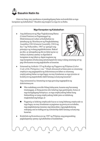 Pagdulog sa mga lokal na hukuman 2. Karapatang paggamit sa pampublikong edukasyon nang walang diskriminasyon. Hakbang upang maitama nagawa na palabagsa karapata.